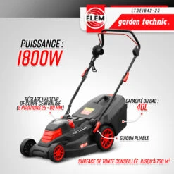 Tondeuse à Gazon électrique 1800w – Largeur De Coupe 40cm – Elem Garden